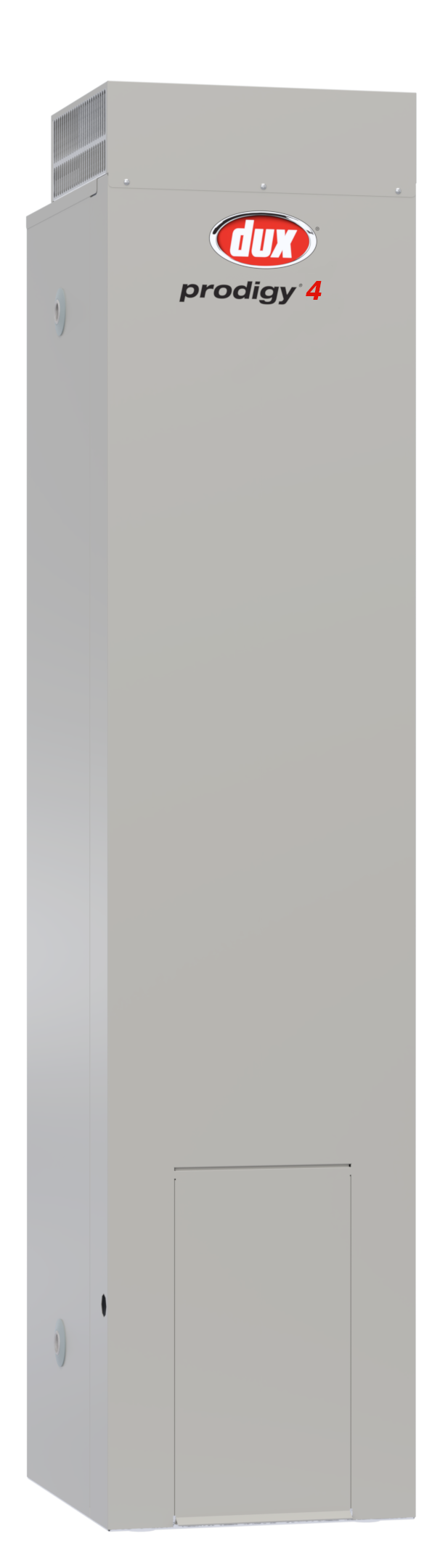 The Dux Prodigy® range has been improved with larger, more efficient burner technology. In fact the Prodigy 4 range is now leading the way in recovery rates and first hour capacity of any 4 star gas storage water heater.